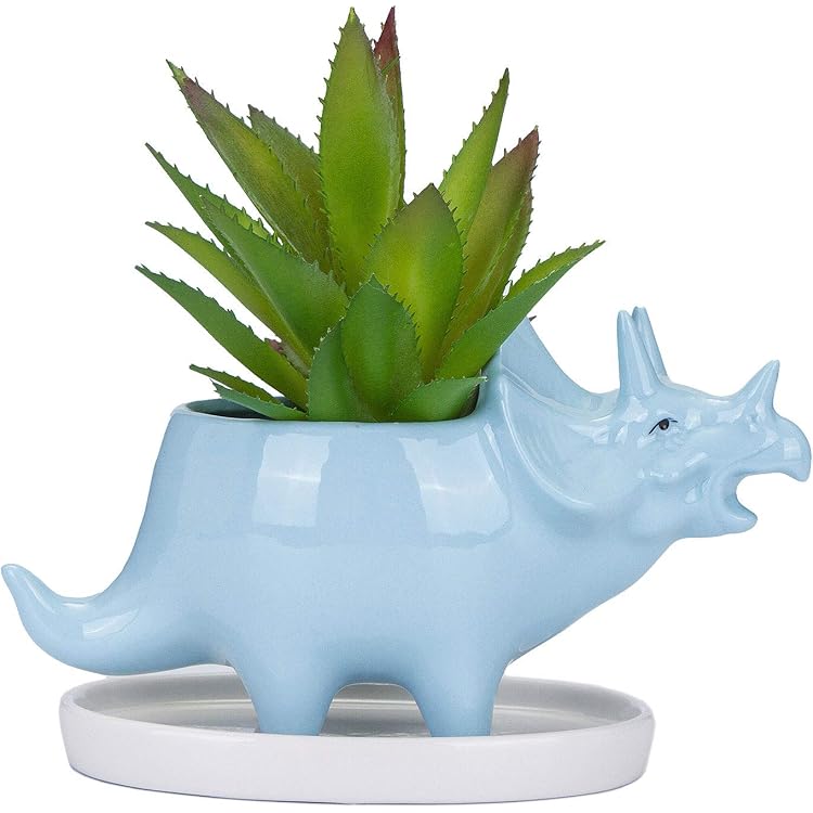 Vanenjoy 12 Inches Cute Cartoon Dinosaur Ceramic Succulent Planter Water Culture Hydroponics Bonsai Cactus Flower Pot Air Plant Vase Holder Desktop Decorative Organizer Stegosaurus Blue